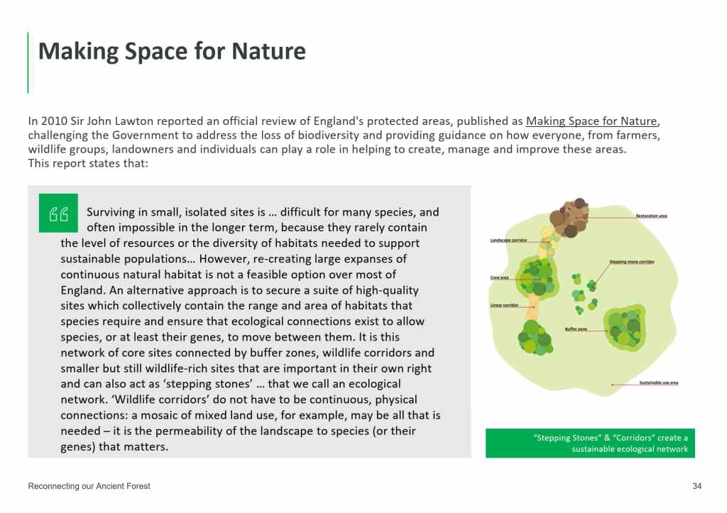 Working with local Councillors, wildlife groups and landowners, with the help of Sir John Lawton, author of the 2010 government review of England’s protected areas “Making Space for Nature”, we have been developing a project to reconnect the Ancient Woodland from Kings Wood and Perry Wood, North-Eastward to the Blean Woodland Nature Reserve and East Blean at Hoath, to connect essential wildlife habitats and re-create a landscape-scale Forest in East Kent.