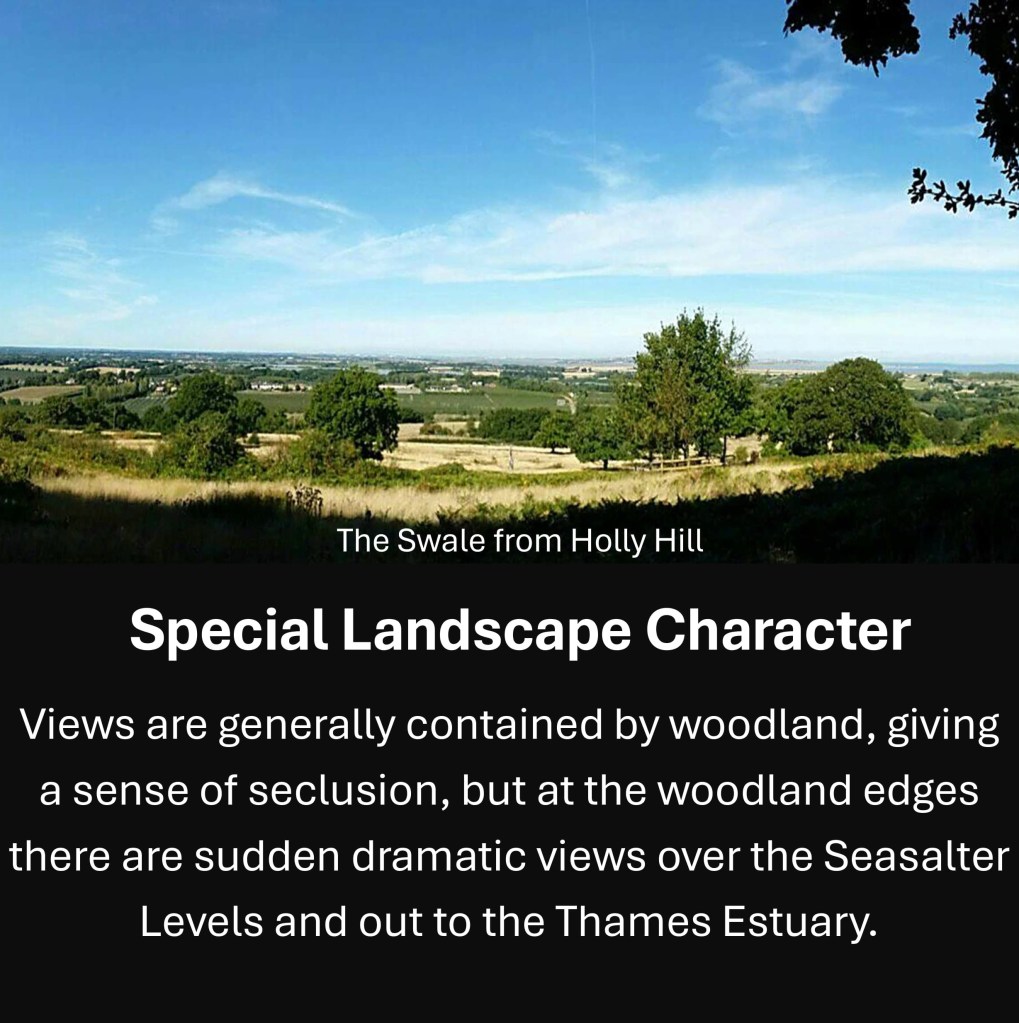 Views are generally contained by woodland, giving a sense of seclusion, but at the woodland edges there are sudden dramatic views over the Seasalter Levels and out to the Thames Estuary. The unusual close proximity of these large woodlands to the sea creates a distinctive sense of place, unique within the context of the Kent landscape.